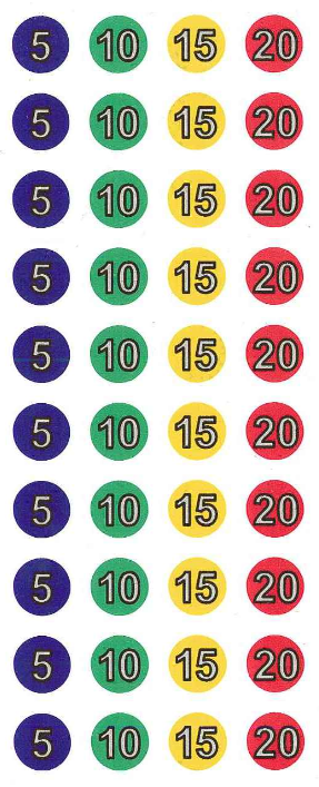 40 numeral labels/sheets of blue, green, yellow and red – 10 of each color with corresponding numerals for each Time Log model.
